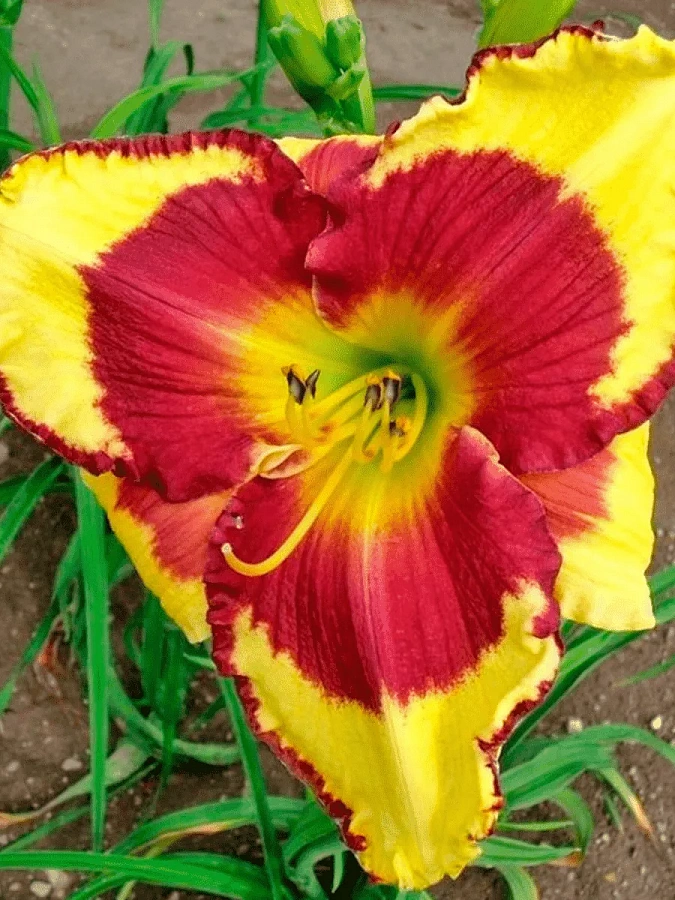 Рассада лилейника Панксатони Фил – невероятно пластичное растение, которое хорошо чувствует себя даже в тени, а при расположении в полутени или на солнце цветение становится более интенсивным и ярким. Высота взрослого растения составляет 75 см, а ширина до 50 см. Время цветения приходится на период с июля по август. Цветы насыщенно-желтого цвета с сердцевиной винного оттенка и ярко-красной каймой гофрированной по текстуре. Необычное сочетание цветов в одном растении дает возможность создания групповых и одиночных композиций с ним. Группы также могут включать в себя другие сорта лилейников. Этот сорт хорошо дополняет устройство и оформление зимних садов. Часто рассада высаживается в предварительно подготовленные контейнеры.