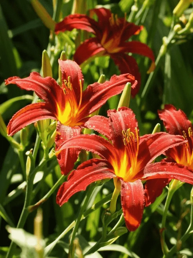 Рассада лилейника "Семми Расселл" (Sammy Russell) предпочитает умеренно-влажные плодородные почвы. Многолетник неприхотлив, выносит практически любые почвы. Но рассада лилейника "Семми Расселл" не выносит застоя влаги и требует обильного полива в засушливый период. Цветет в июле - сентябре. Цветки диаметром 7-10 см, темно-красные с золотисто-оранжевым горлом. яркость окраски наилучше проявляется на солнечных участках. От цветов исходит легкий, приятный аромат. Высота кустарника до 60 см, а цветонос может достигать до 80 см.