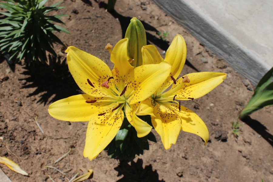 Окраска цветка : ярко-желтый с редким темным крапом и оранжевыми пыльниками