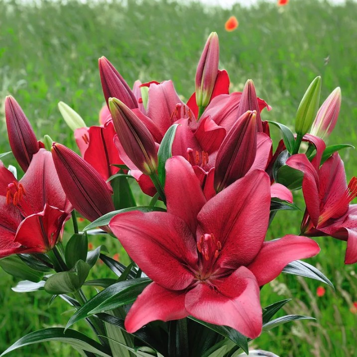 Луковицы Лилии азиатской Ред Каунти (Lilium asiatic Red County) идеальны как основа цветника и подходят для расстановки цветовых акцентов. Темно-красные цветы этого сорта меняют свои оттенки в процессе, приобретая томатно-оранжевый цвет. Как и остальные представители азиатских сортов, Ред Каунти отличается морозостойкостью и нетребовательностью к уходу. Растение отлично реагирует на минеральные подкормки, отвечая на них обильным и продолжительным цветением. Выбирая место для посадки, нужно учитывать, что сорт может достигать 90 см.