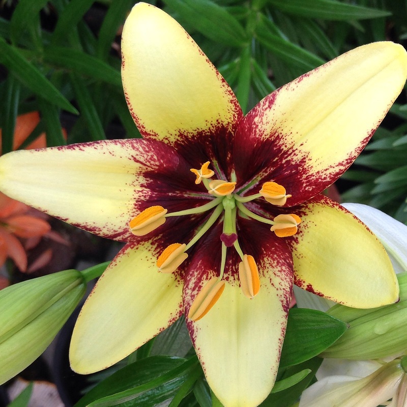 Луковицы Лилии азиатской Танго Бамблби (Lilium asiatic hybrid Tango Bumblebee) ― сорт невероятной красоты, привлекающий внимание контрастной окраской лепестков. На кусте высотой до 1 метра распускаются крупные цветки лимонно-желтого цвета с темным центром и окантовкой лепестков. Словно тропические бабочки, они наполняют сад, «порхая» над цветами с более скромной окраской.