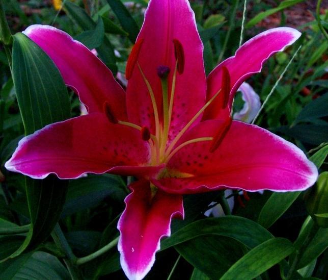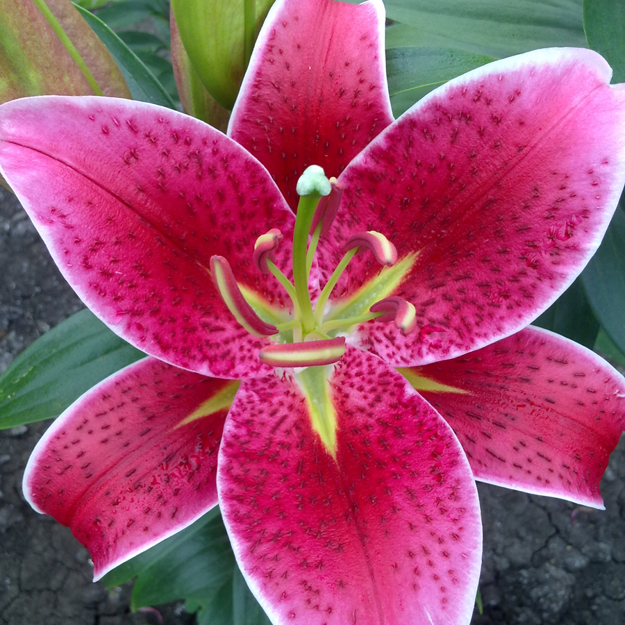 • Окраска цветка : насыщенно-розовый с темным крапом, кончики белые
