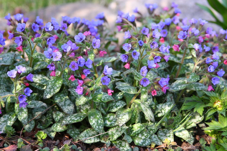 Рассада медуницы гибридной Сильвер Букет (Silver Bouquet) представляет собой травянистое многолетние растение небольшой высоты. Листья у этого кустистого растения матово-серебристые с тонкой зеленой окантовкой и такими же пятнышками. Цветочки колокольчики собраны небольшие соцветия по несколько штук. Сначала появляются розовые цветки, которые со временем становятся голубыми, образуя причудливый карнавал оттенков. Медуница гибридная Сильвер Букет размножается как семенами, так и деленками, и представляет собой прекрасное декоративное растение для тенистых участков сада. Предпочитают супесчаные или суглинистые, щелочные или слабокислые, рыхлые почвы, содержащие гумус. Высаживать растение лучше в полутенистом или затененном, прохладном месте. Растение не переносит жару, относительно влаголюбивы.