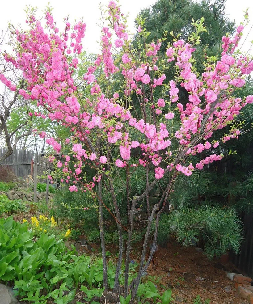 Саженцы миндаля трехлопастного на штамбе высаживают на солнце или в полутень в хорошо дренированную, супесчаную или суглинистую почву. Сорт неприхотливо, зимостоек, но нуждается в защите от сильных ветров. Высота декоративного кустарника достигает от 150 до 200 см. В апреле появляются потрясающие махровые цветы в форме розочек. На побегах они располагаются попарно. Лепестки окрашены в нежно-розовый цвет. Период цветения длится до начала мая. Применяют саженцы миндаля трехлопастного на штамбе для украшения патио, парадного входа, аллей или топиарных садов.