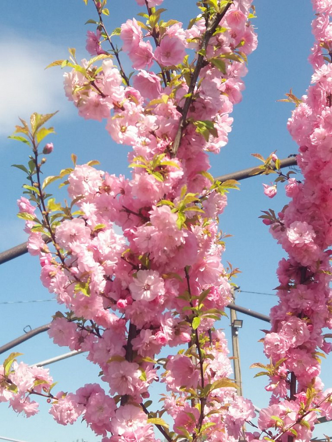 Миндаль трехлопастной танюша - это удивительное растение с нежно-розовыми цветками, которые радуют глаз в начале весны. Его темно-зеленые листья создают красивый контраст и придают растению особый шарм. Высота этого миндаля может достигать 200-300 см, что делает его идеальным для групповой посадки или одиночного выращивания в саду.
