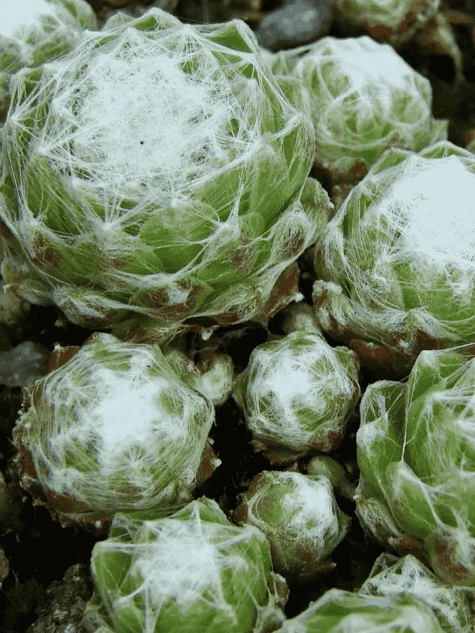Саженцы молодила паутинистого кровельного (Sempervivum arachnoideum) высаживают на небольшом расстоянии друг от друга. Растение любит солнечный свет, переносит засуху и полутень, но не выдерживает застоя влаги. Формирует многочисленные розетки из мясистых зеленых листьев. Расцветает в середине июня и радует цветением до конца августа. Цветы звездообразные, собранные в небольшие соцветия розового оттенка. Декоративный многолетник используется для озеленения газонов, миксбордеров, каменистых горок. Эффектно смотрится в одиночных и групповых посадках с другими культурами.