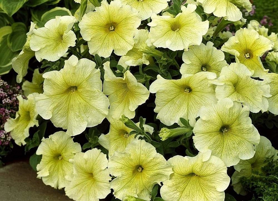 Эта петуния цветет с мая по июль, радуя глаз яркими желтыми цветками с необычными жилками. Она предпочитает солнечные места и плодородные почвы, поэтому выберите для нее место с хорошим освещением. Регулярный полив и умеренное удобрение помогут вашему растению процветать и радовать вас своими красками.