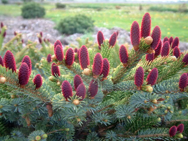 Саженцы Ели двуцветной (Picea bicolor) – это медленнорастущее зеленое дерево с конусовидной формой и выраженной острой верхушкой, у которого ветви растут уже от низа. За первые 10 лет ель вырастает на 250 сантиметров в высоту и 70 сантиметров диаметром. Длина четырехгранной, острой, дугообразной хвои примерно 1-2 сантиметра. Поверх хвоя обычно зеленая, а внизу она голубой.