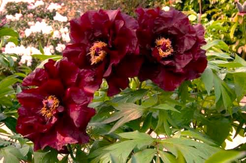 Саженцы пиона древовидного Black Panther (Блэк Пантер) Привлекательный древовидный пион для сада с яркими цветами насыщенного темно-красное дерево-малиновый с шоколадно-коричневыми, почти черными отблесками, очень яркие шелковистые мягкие лепестки, с выступающими желтыми тычинками в центре. Отлично подходит в качестве акцента в саду. Цветы отлично подходят для срезки с легкий, пряно-сладкий ароматом. Имеет зеленую лиственную листву. Это относительно неприхотливый в уходе кустарник, и он не должен требовать большой обрезки. В отличие от травянистого пиона стебли такого растения в осеннее время не увядают, а с каждым годом разрастаются все больше, и со временем кустик приобретает полушаровидную форму. Характерные особенности растения: