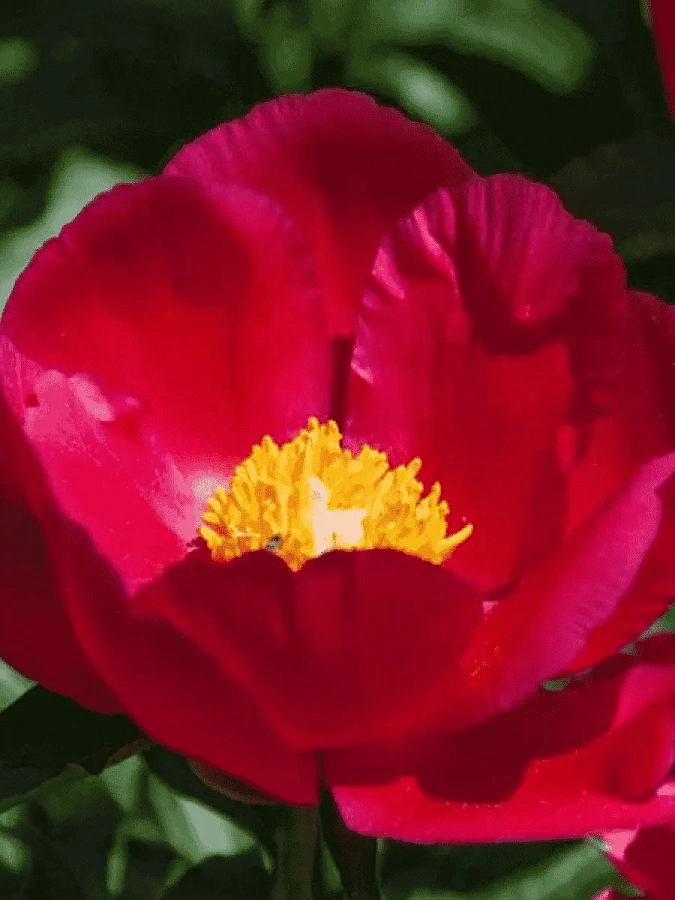 Пион сорта America (Америка) считается универсальным сортом. Его цветы красиво раскрываются благодаря широким и ровным лепесткам. Кустарник простой формы, цветы не махровые с гофрированными лепестками. Бутоны похожи на тюльпаны. Аромат растения очень слабый. Данный пион является межвидовым гибридом. У него простая форма соцветий, но благодаря алому оттенку цветов растение не останется незамеченным. Сам кустарник высокий, цвести он начинает в мае, становясь олицетворением любви и страсти. Цветы отлично подойдут для украшения альпинариев. На крепком стебле появляются элегантные бутоны похожие на тюльпаны. Пион нормально переносит зиму и не требует укрытия. Но для него важна организация циркуляции воздуха.