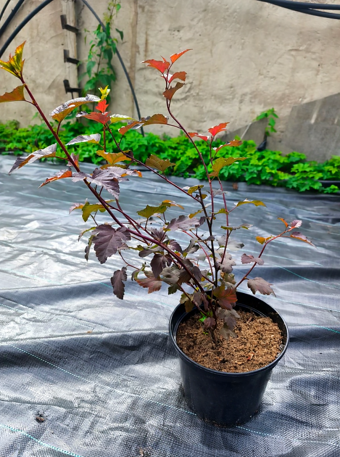 Саженцы пузыреплодника «Диабло» (Diabolo) высаживают на открытую местность, потому что кустарник довольно быстро разрастается до четырех метров в длину и ширину. Листва имеет длину десять сантиметров и пурпурную окраску, если растение растет на солнечном участке. Если же саженцы пузыреплодника «Диабло» посадить на затененный участок, то листики станут зелеными с легким пурпурным оттенком. Растение не переносит обильного полива. Почва подходит любая, но дренаж обязателен. Крупномеры пузыреплодника «Диабло» служат отличным решением для создания живой изгороди. Кустарник покрывается розовыми цветами с красными тычинками.