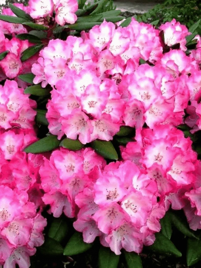 Саженцы рододендрона Фантастика (Fantastica) вырастают в эффектные кустарники, цветение которых украсит любые виды газонов и клумб. Растение имеет яркие темно – розового цвета снаружи и светлее внутри цветочки в конической формы соцветиях, которые радуют долгим пышным цветением в мае – июне. У растения кожистые вечнозеленые крупные листья. В рост саженец рододендрона Фантастика идет медленно.