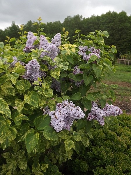 Саженцы Сирени обыкновенной Аукубифолия на штамбе (Aucubaefolia, Syringa vulgaris) ароматный куст, который никого не оставит в стороне. В период цветения запах наполняет всю округу. Соцветия сирени большие, они словно покрыты бархатом. На кусте появляется много бутонов. Окраска может быть разной интенсивности, гамма – лиловая или голубой. Если лучи солнца падают определённым образом, то цветы кажутся немного синеватыми. Высота куста зависит от местности и условий. У кого-то он врастает до 250 сантиметров, а кто-то может похвастаться пятиметровым кустом. Очень эффектно выглядят пятнистые листочки, на их фоне грозди цветов кажутся ещё крупнее.