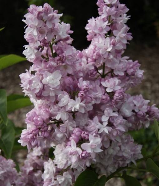 Сорт отличается обильным цветением в конце мая-начале июня. Его бутоны лилового оттенка, цветки – махровые, розовые, собранные в крупных соцветиях, длина которых достигает 30 сантиметров.
