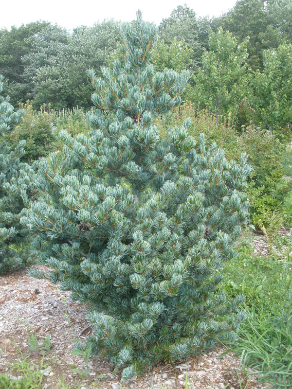 Саженцы сосны мелкоцветковой Glauca вырастают в красивые деревья высотой 5 метров. Они могут послужить основой для создания бонсая или же украсить собой каменный или вересковый сад. Неправильной формы крона состоит из множества изогнутых ветвей, покрытых длинной серебристой хвоей. Голубоватые яйцевидные шишечки по мере созревания меняют свой окрас на тёплый коричневый оттенок. Растёт сосна медленно, прибавляя 10 сантиметров длины каждый год. Размножается крупномерами.