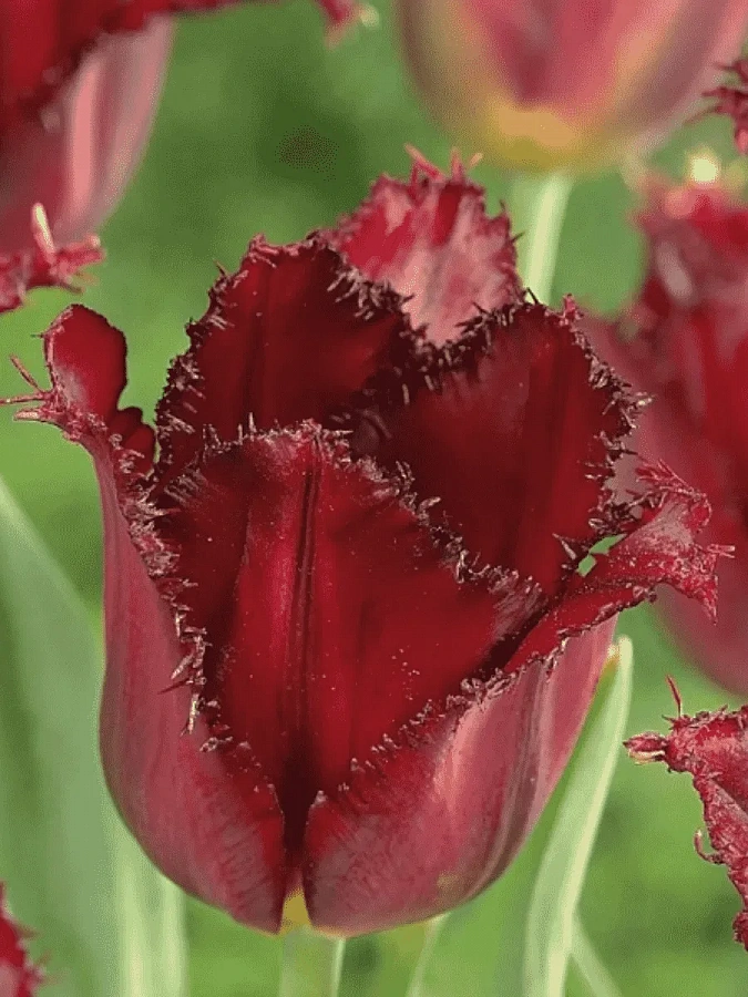 Тюльпан бахромчатый Pacific Pearl - это изысканное растение с темно-малиновыми цветками, которое поразит вас своей красотой и изяществом. Этот многолетний цветок достигает высоты до 40 см и идеально подходит для групповых и одиночных посадок. Листья тюльпана Pacific Pearl имеют травянистую форму, что придает растению особый шарм.