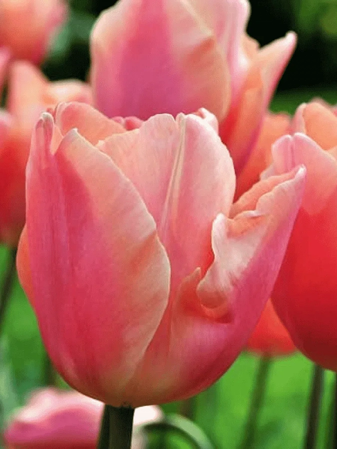 Луковицы тюльпана Драгон Кинг (Tulipa Dragon King) – многоцветковый сорт, из одного клубня вырастает 4-6 цветоножек с розово-желтыми цветками приглушенного нежного оттенка.