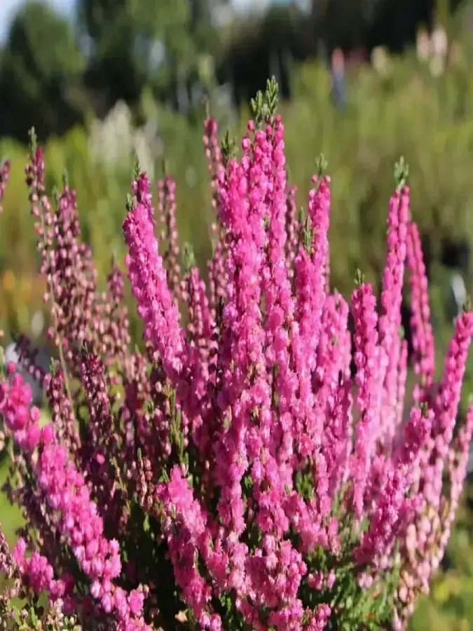 Саженцы вереска обыкновенного Яна (Jana) добавят цветнику яркости в осенний период. С сентября по октябрь многочисленные, направленные вверх, побеги покрыты крупными махровыми цветочками насыщенного малиново-розового оттенка. Цветущий вереск распространяет характерный терпкий медовый аромат. Вне цветения многолетник не теряет привлекательности за счет густой мелкой светло-зеленой листвы, которая не покидает побегов с приходом холодов.