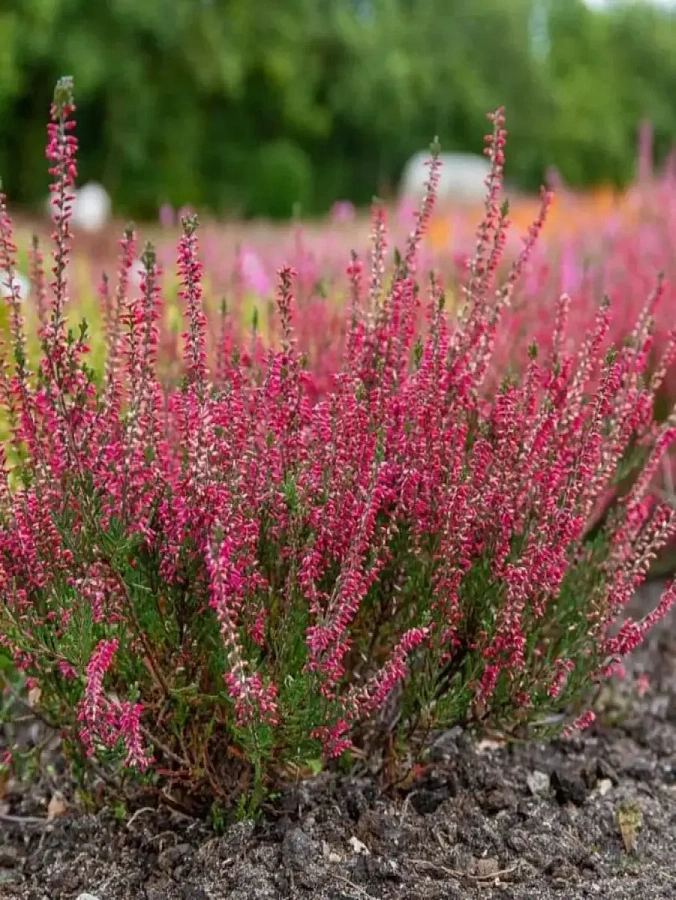 Саженцы вереска обыкновенного Селма (veresk obyknovennyy selma) относятся к декоративным многолетним почвопокровникам. Кустарник подходит для оформления альпинариев, рокариев, бордюров и озеленения приусадебных участков. Вереск предпочитает расти на влажных торфяных грунтах и солнечных участках. Растение относится к морозостойким, может выдерживать понижения температуры до -30 градусов. Высота взрослого кустарника составляет 45-50 сантиметров. В диаметре куст достигает 30 сантиметров. Побеги прямостоячие. Цветение продолжительное, длится с сентября по декабрь в южных регионах. Соцветия красивого темно-красного оттенка.