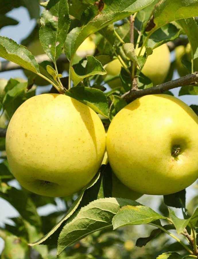 Яблоня Golden Delicious - это настоящий деликатес для вашего сада! Это растение порадует вас не только сочными и сладкими плодами, но и красивыми белыми цветками. Ее ствол прочный и устойчивый, а размеры растения позволяют легко разместить его как в групповых, так и в одиночных посадках. Листья имеют интересную форму и придают яблоне особый шарм.